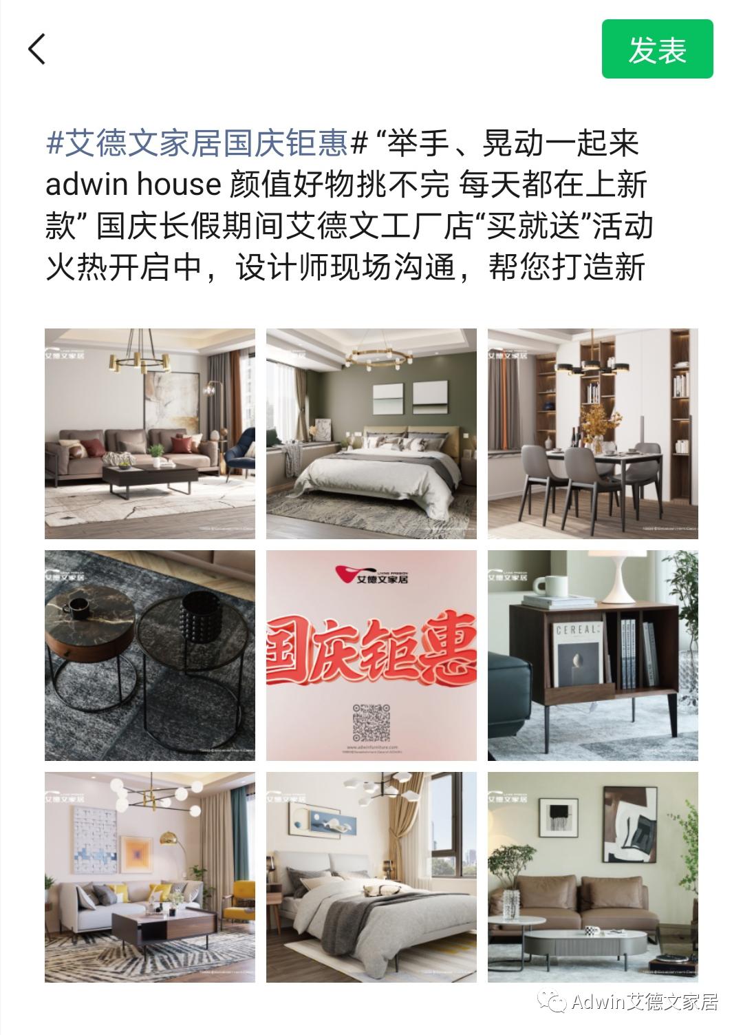 “ #艾德文家居國慶鉅惠# “舉手、晃動一起來 adwin house 顏值好物挑不完 每天都在上新款” 國慶長假期間艾德文工廠店“買就送”活動火熱開啟中,設計師現場溝通,幫您打造新家,預約電話13484116213 ”