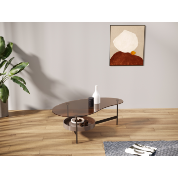 CT-636 茶色透明鋼化玻璃+石色亮光托盤+黑啞光金工件