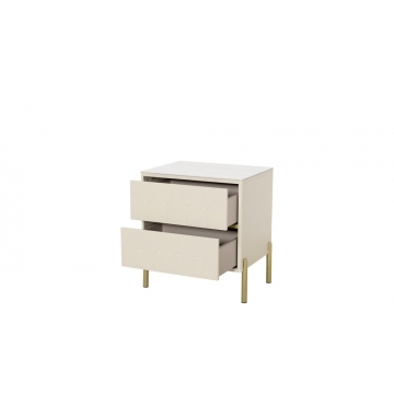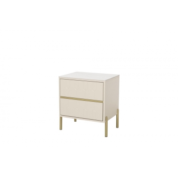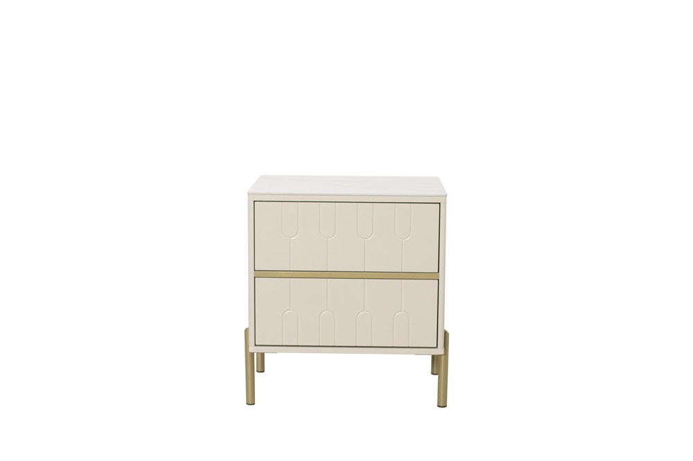 卡塔金巖板面板+米灰啞光主體+亮銅色金工腳、裝飾條