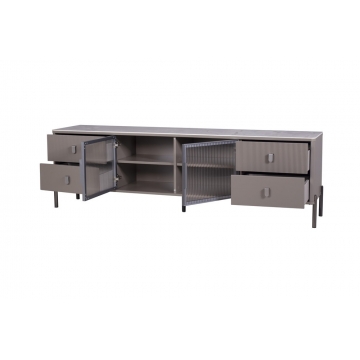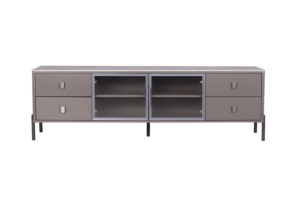 意大利米灰陶瓷面板+石色啞光主體+長虹鋼化玻璃+紳士灰門框+灰色拉手+槍色腳