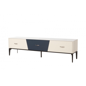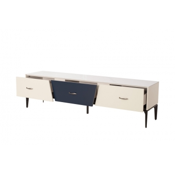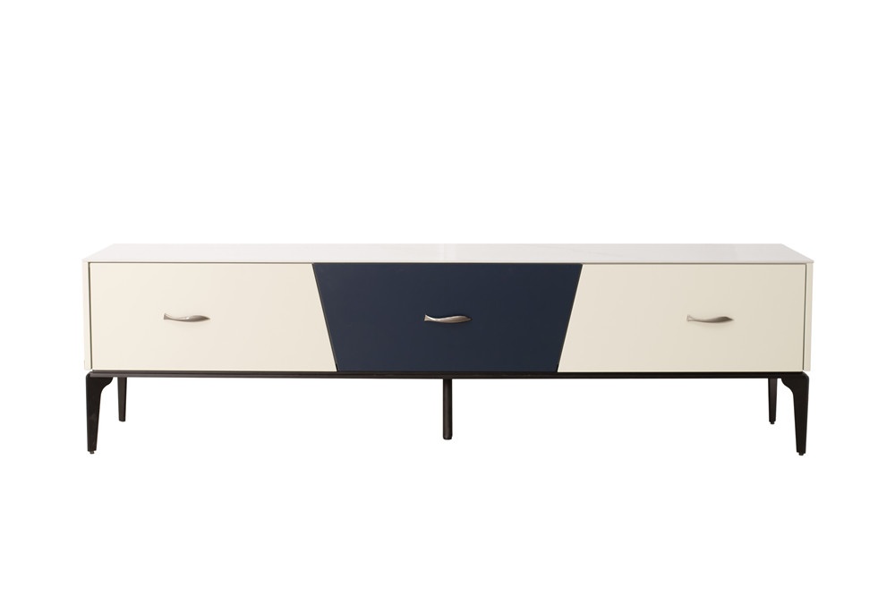 卡塔金巖板面板+米灰啞光主體+靛藍啞光抽面+黑啞光金工腳