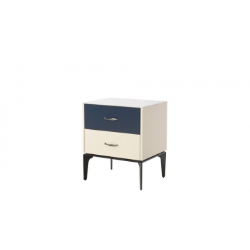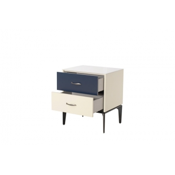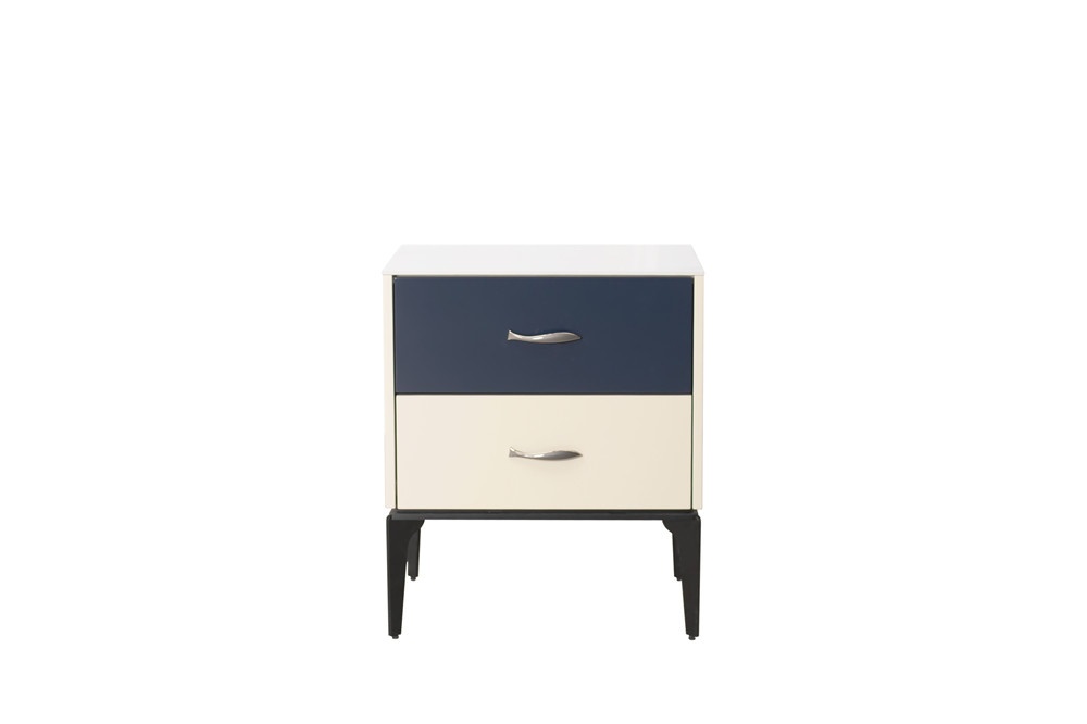 卡塔金巖板面板+米灰啞光主體+靛藍啞光抽面+黑啞光金工腳