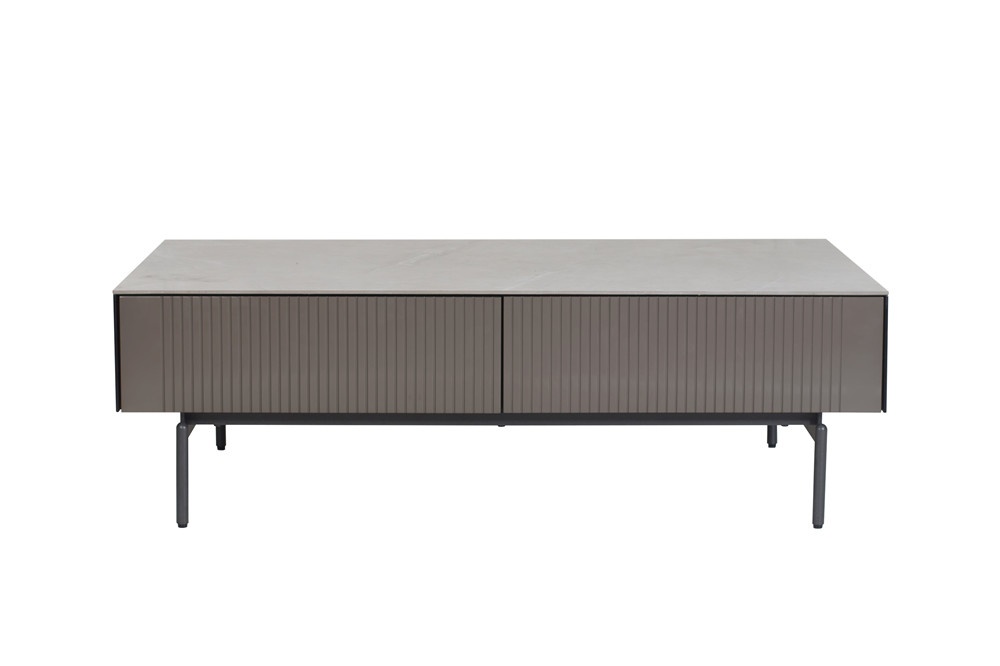 普佩石巖板面板+煙熏木皮側(cè)板+石色亮光抽面+黑漆內(nèi)盒+金屬深灰色金工件