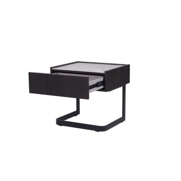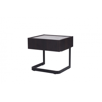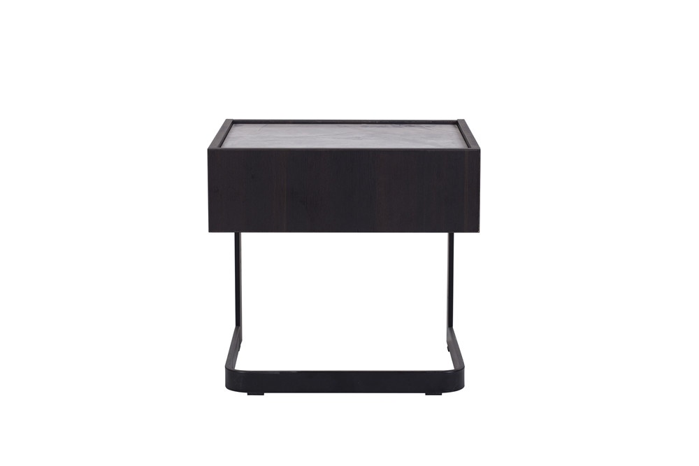 底板+陶瓷下墊板+背板+右側板+左側板+抽面板煙熏木紋三聚氰胺板(PB)+抽盒淺灰布紋三聚氰胺板+意大利米灰陶瓷面板+黑啞光金工腳